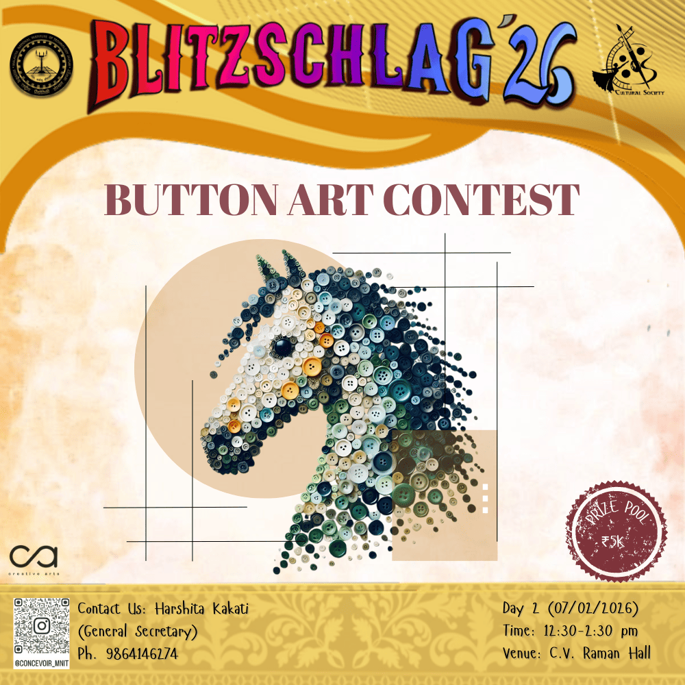 The Button Art Competition encourages participants to transform simple buttons into imaginative artworks by arranging them into creative patterns and designs. Using buttons of various sizes, colors, and textures, participants will compose visually striking pieces that explore rhythm, form, and composition. The competition promotes creativity and material exploration, with entries evaluated on originality, pattern development, effective use of buttons, and overall aesthetic appeal.