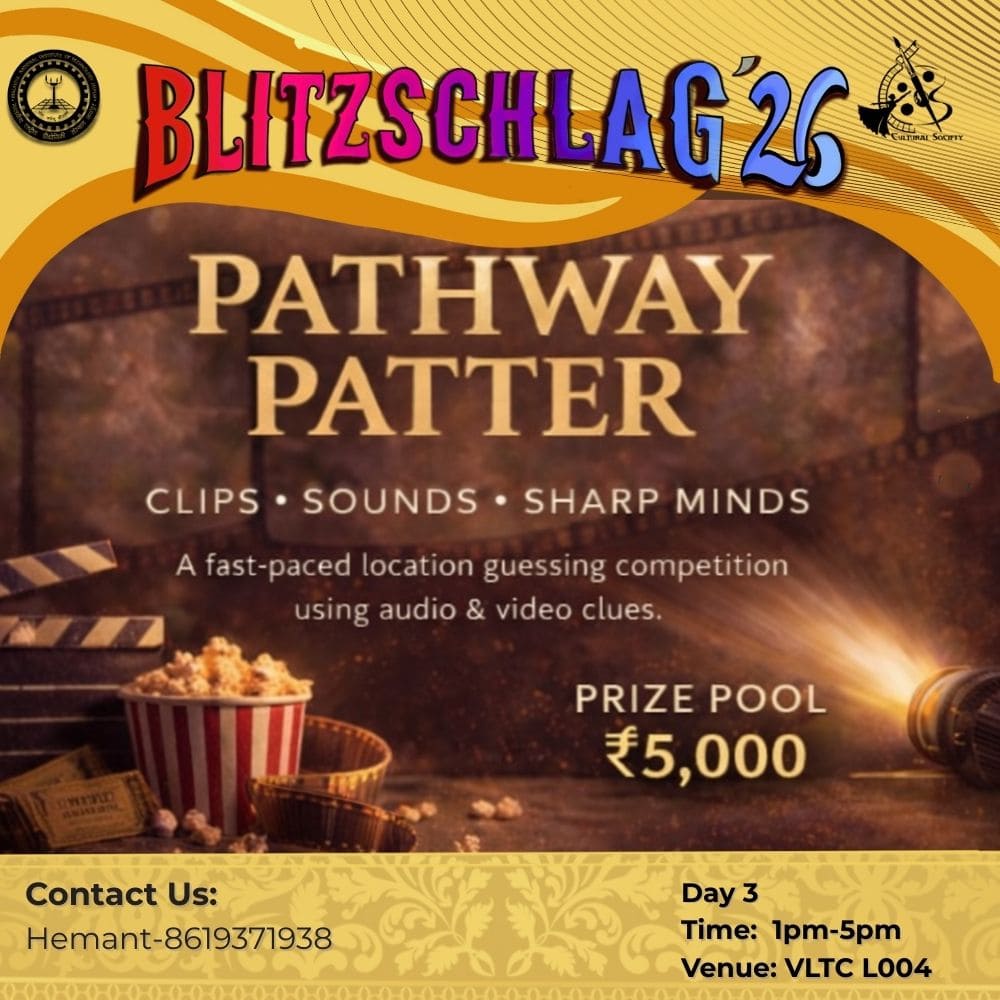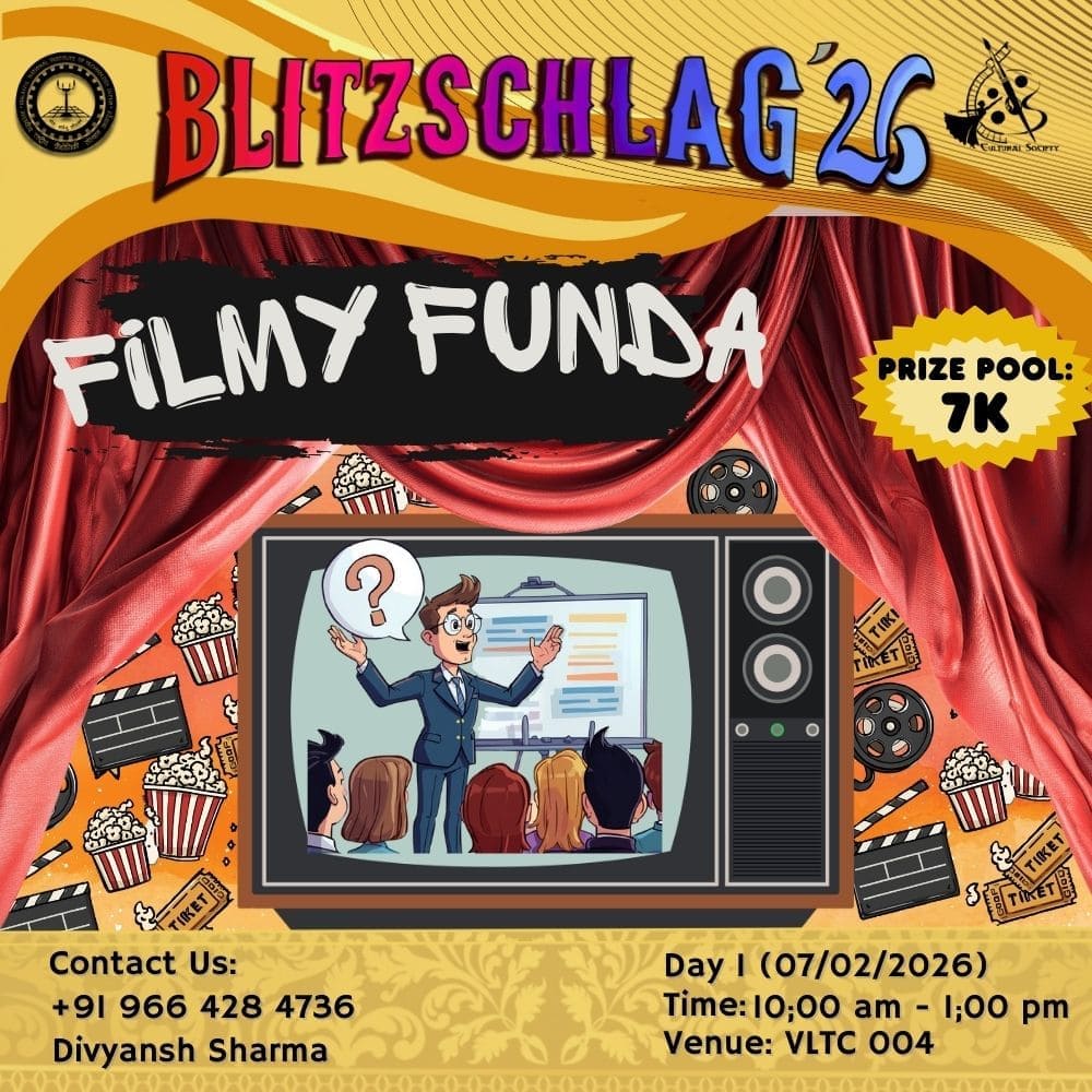 Teams will create short films of 3–10minutes entirely within the festival premises, applying the concepts and techniques learned during our event of Film making workshop conducted in Day 1. This hands-on filmmaking challenge is designed to simulate a real-world production environment within a limited time and space. Participants will be responsible for the complete filmmaking process, including idea development, scripting, direction, acting, cinematography, sound, and editing. This ensures holistic exposure to film production while encouraging teamwork, creativity, and problem-solving under time constraints. Throughout the shoot, mentors and supervisors will be present to guide teams at every stage, offering creative and technical feedback, ensuring smooth execution, and maintaining a structured workflow without limiting artistic freedom. This mentorship-driven approach helps participants refine their storytelling and technical skills in a practical setting. To further enhance engagement and learning, the activity will be followed by an interactive film quiz, testing participants’ knowledge of cinema, filmmaking techniques, and visual storytelling in a fun and competitive format. This segment adds an element of excitement while reinforcing key concepts from the workshop. Overall, the event combines practical filmmaking experience, guided mentorship, and interactive learning, making it an immersive and rewarding experience for all participants.