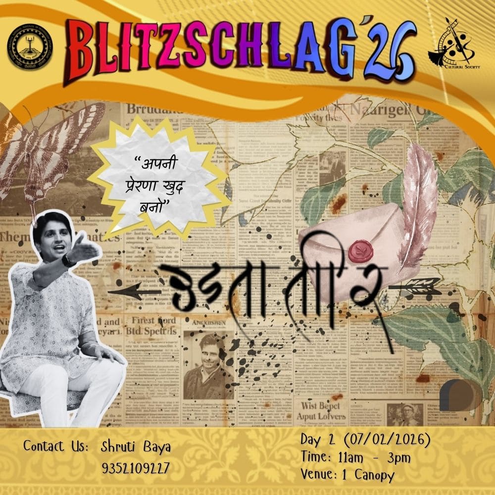 Udta Teer will be a creative canopy space where students can freely express themselves by writing wishes, sharing good shayaris, or even penning down fun “breaking news.” Alongside this, they can participate in small, unique, and interactive games that spark laughter and creativity. The event is designed as a chill zone full of imagination, spontaneity, and lighthearted fun, where everyone contributes something memorable while enjoying quirky activities.